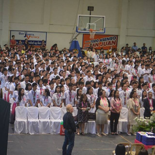 Candidates for the Third Moving Up ceremonies from the San Juan National Junior High School marched down the aisle of San Juan Gymnasium on April 3, 2018 to receive their Certificates of Completion. OIC Superintendent Dr. Joel T. Torrecampo, CESE, led the DepEd San Juan officials in witnessing the affair that was attended in by all school heads, the entire San Juan National High School faculty, key city officials, other guests and stakeholders, and the proud parents to pay tribute to the hard work of all Grade 10 students who successfully finished the requirements stipulated in the curriculum. He was joined later on stage by the OIC Asst. Superintendent Mrs. Flordelisa D. Pereyra, CESE, the different Education Program Supervisors and other division officials, and all the School Heads in the elementary schools who took turns in giving out the certificates to the successful passers.